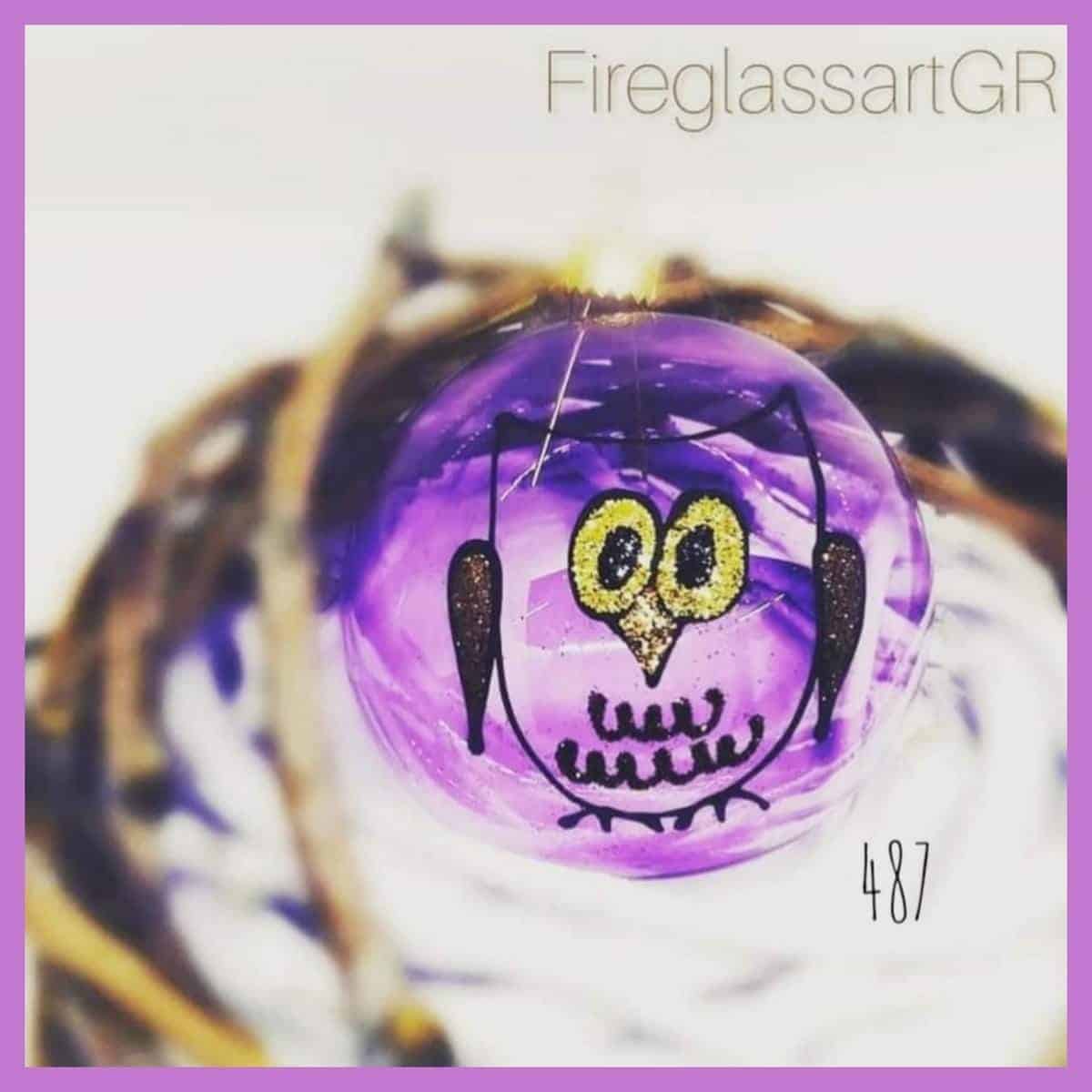 Χειροποίητη μπάλα από φυσητό γυαλί , ζωγραφισμένη στο χέρι.