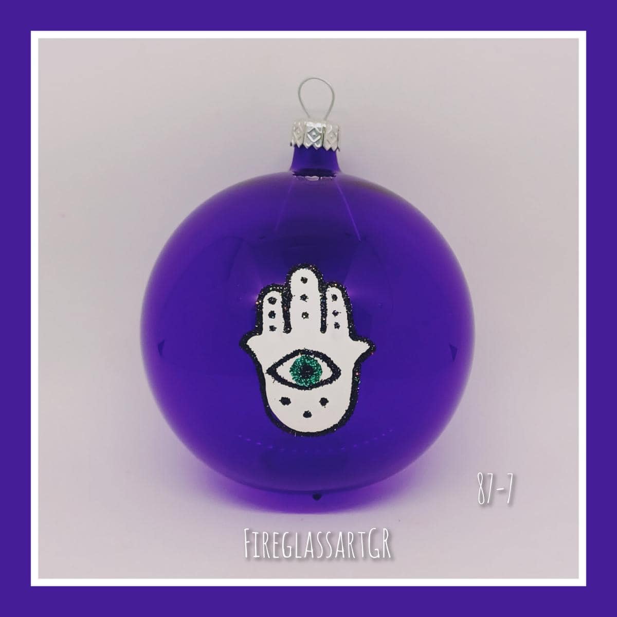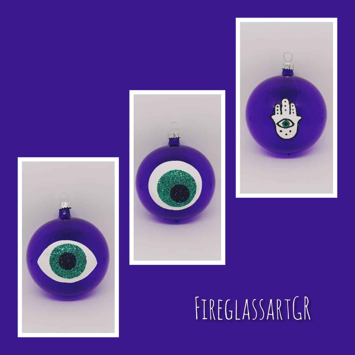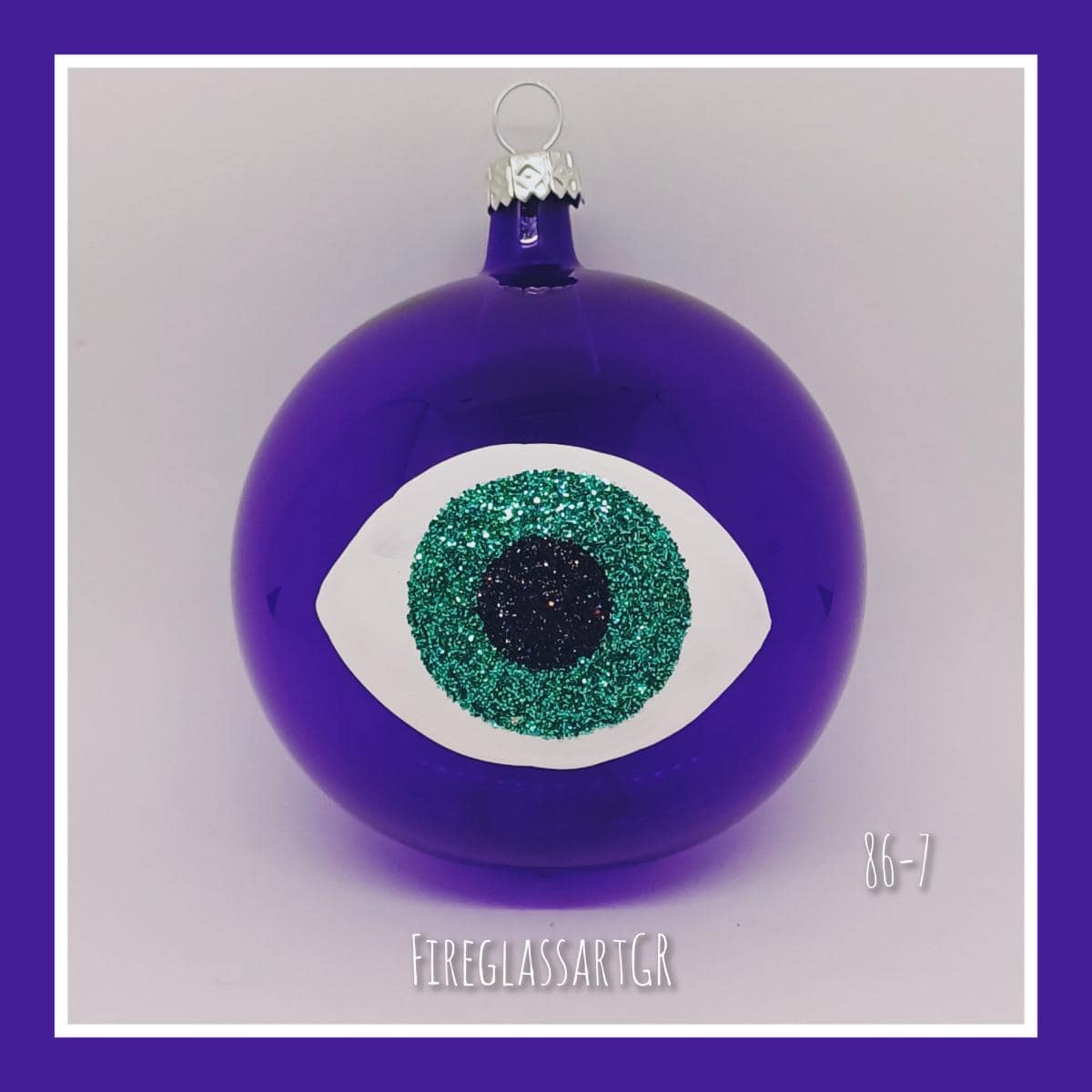 Χειροποίητη μπάλα από φυσητό γυαλί , ζωγραφισμένη στο χέρι, μάτια οβάλ-στρογγυλό-fatima stras