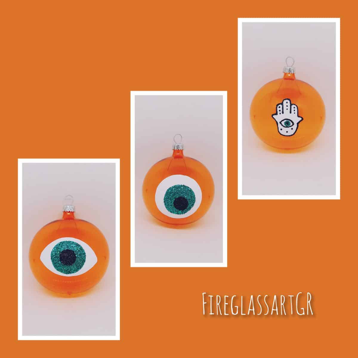 Χειροποίητη μπάλα από φυσητό γυαλί , ζωγραφισμένη στο χέρι, μάτια οβάλ-στρογγυλό-fatima stras