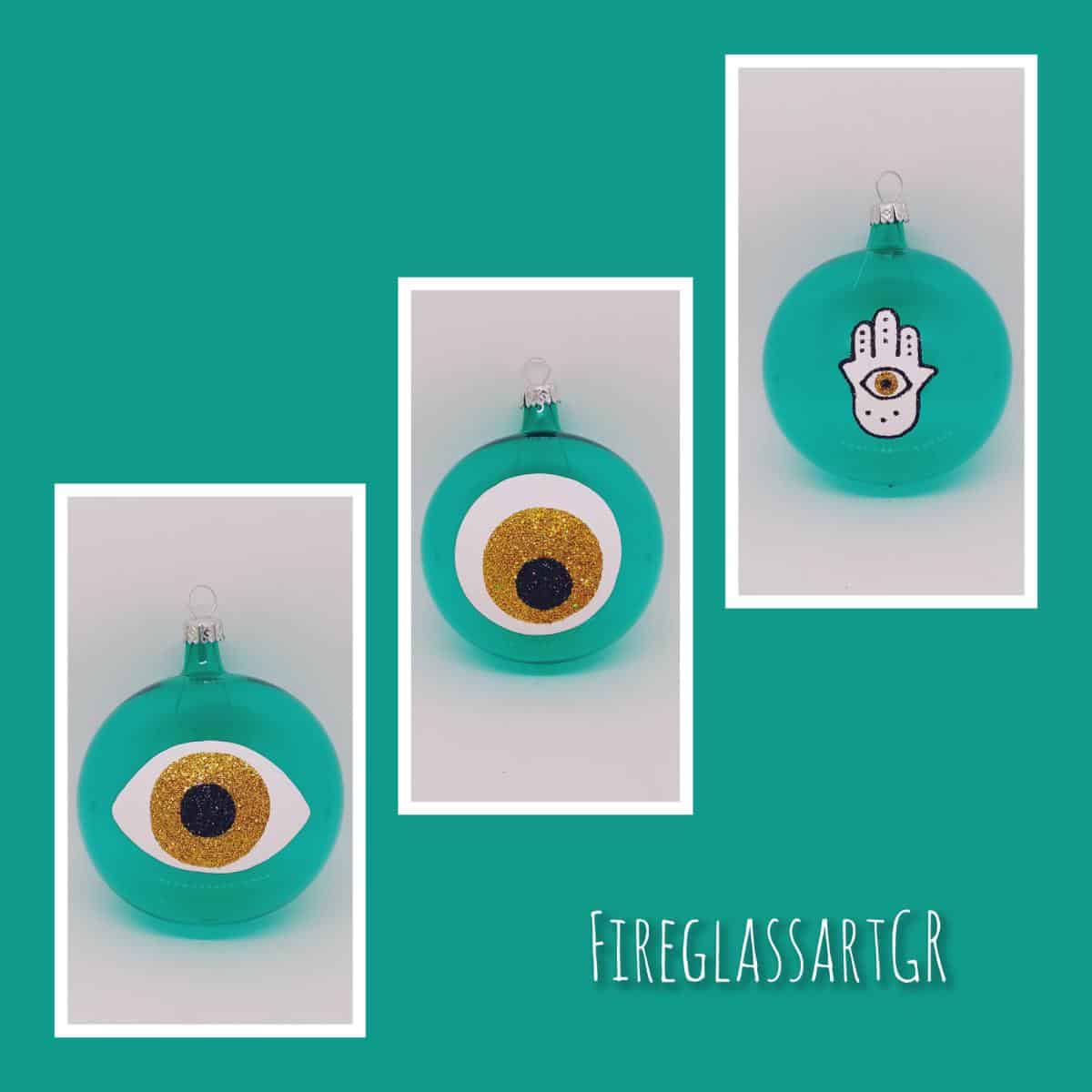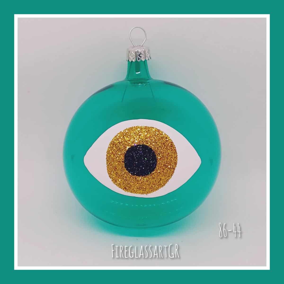 Χειροποίητη μπάλα από φυσητό γυαλί , ζωγραφισμένη στο χέρι, μάτια οβάλ-στρογγυλό-fatima stras