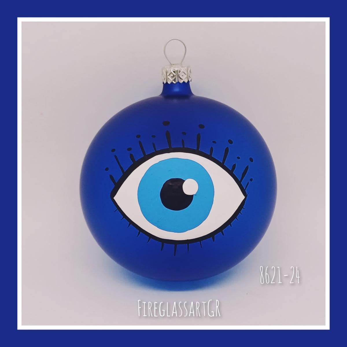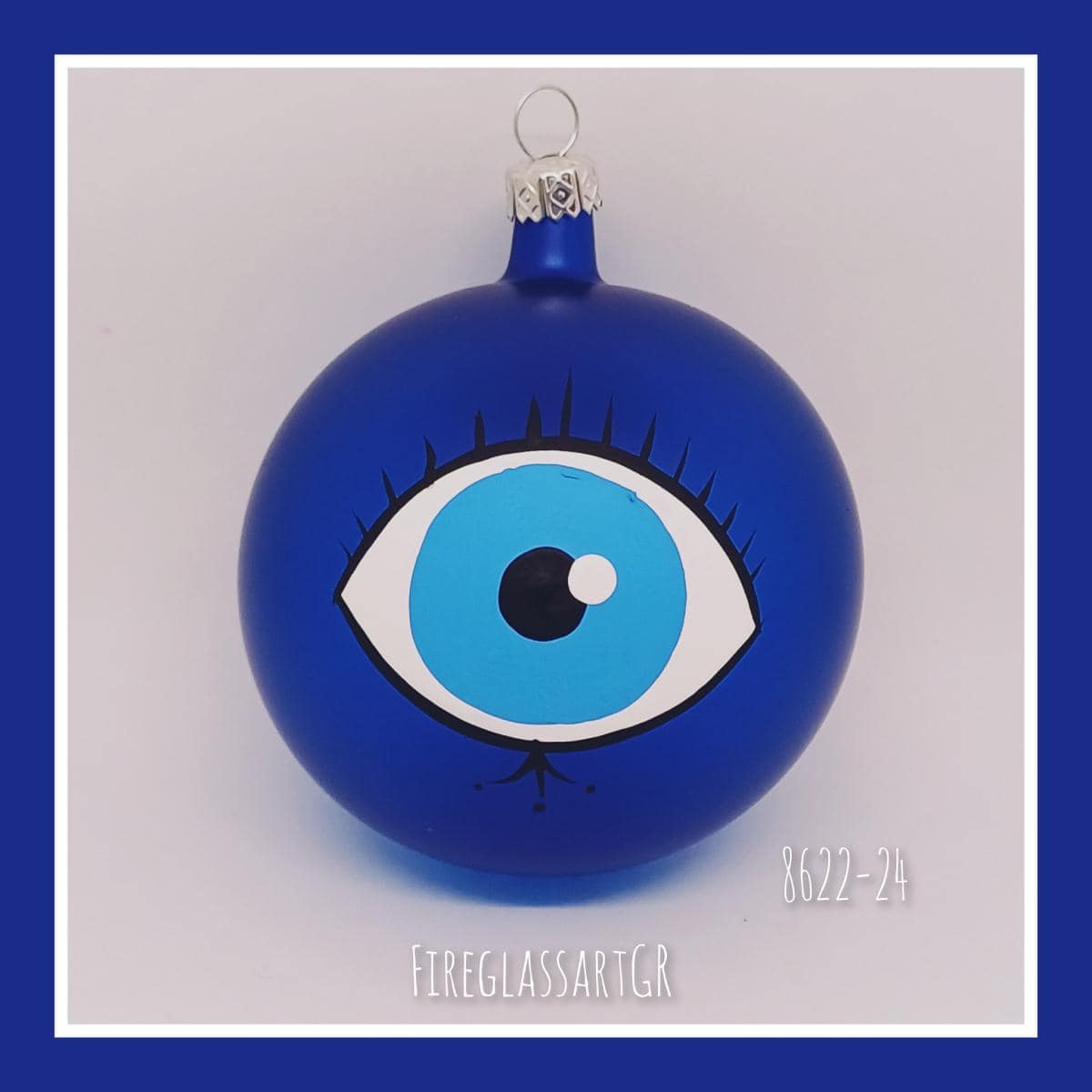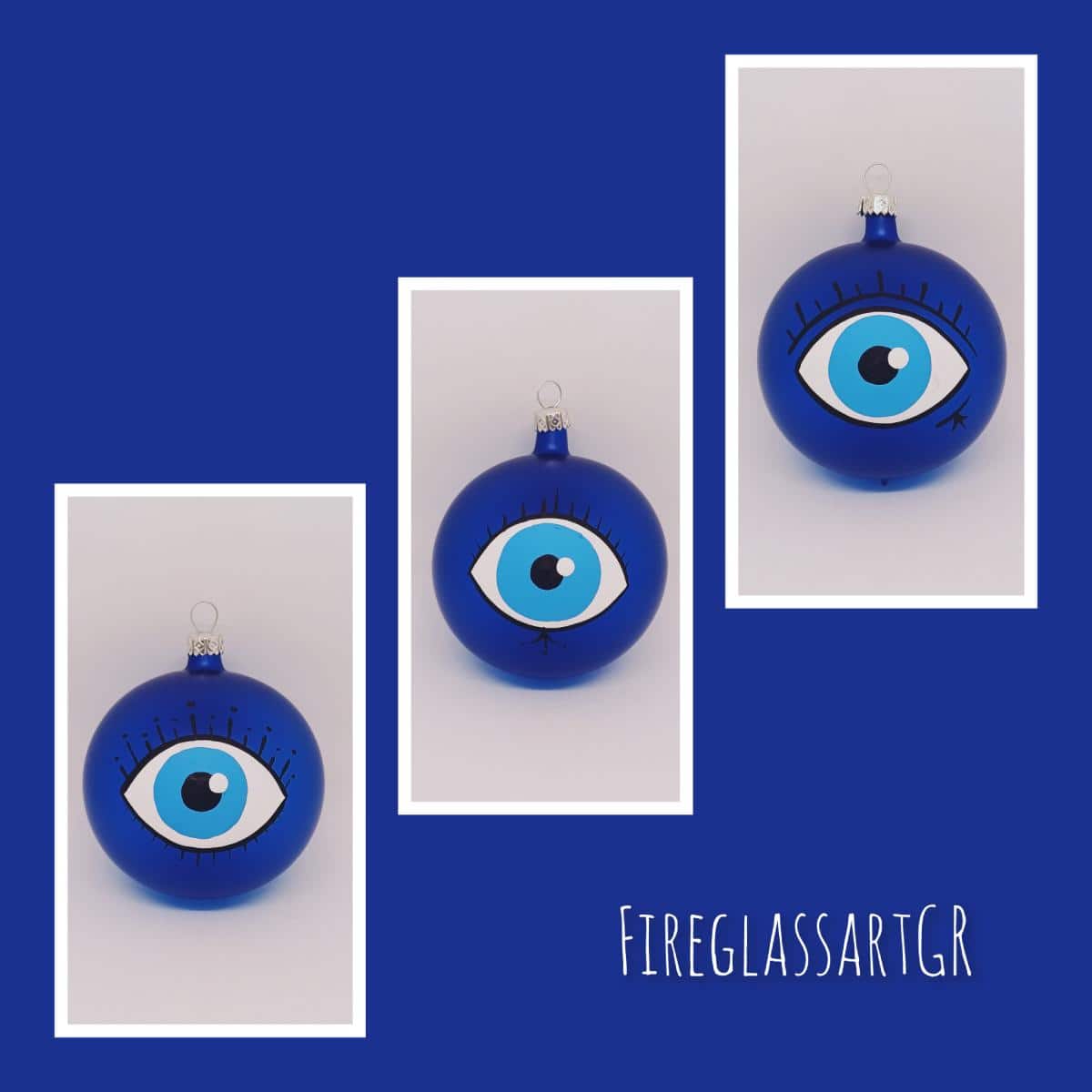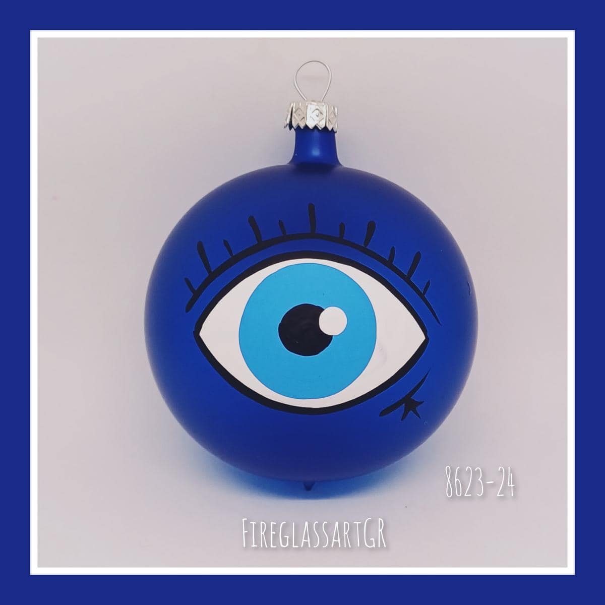 Χειροποίητη μπάλα από φυσητό γυαλί , ζωγραφισμένη στο χέρι, μάτια με βλεφαρίδες