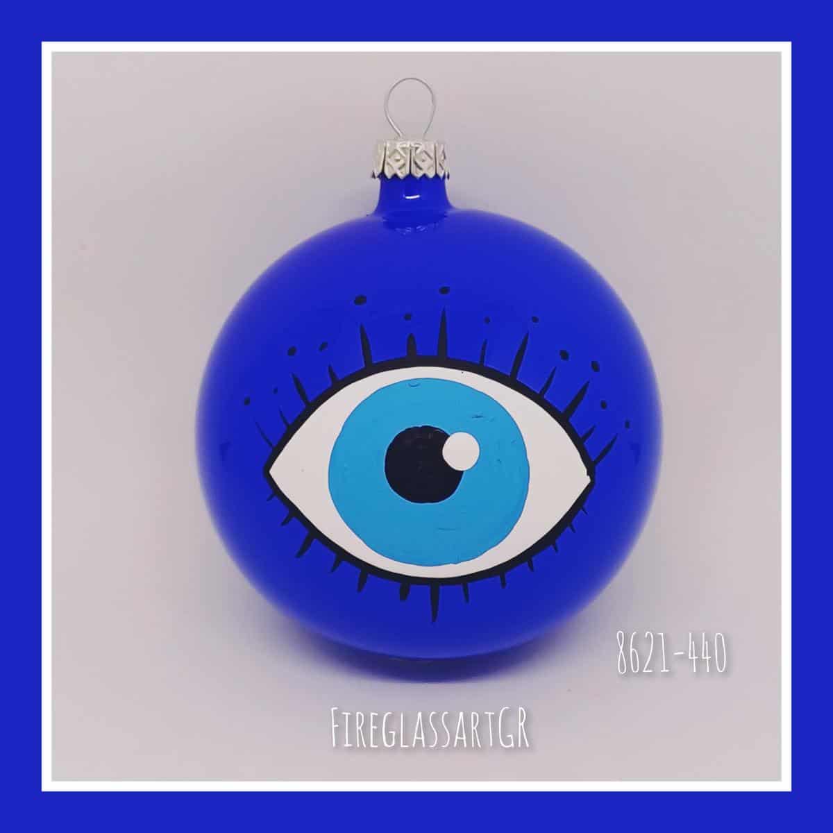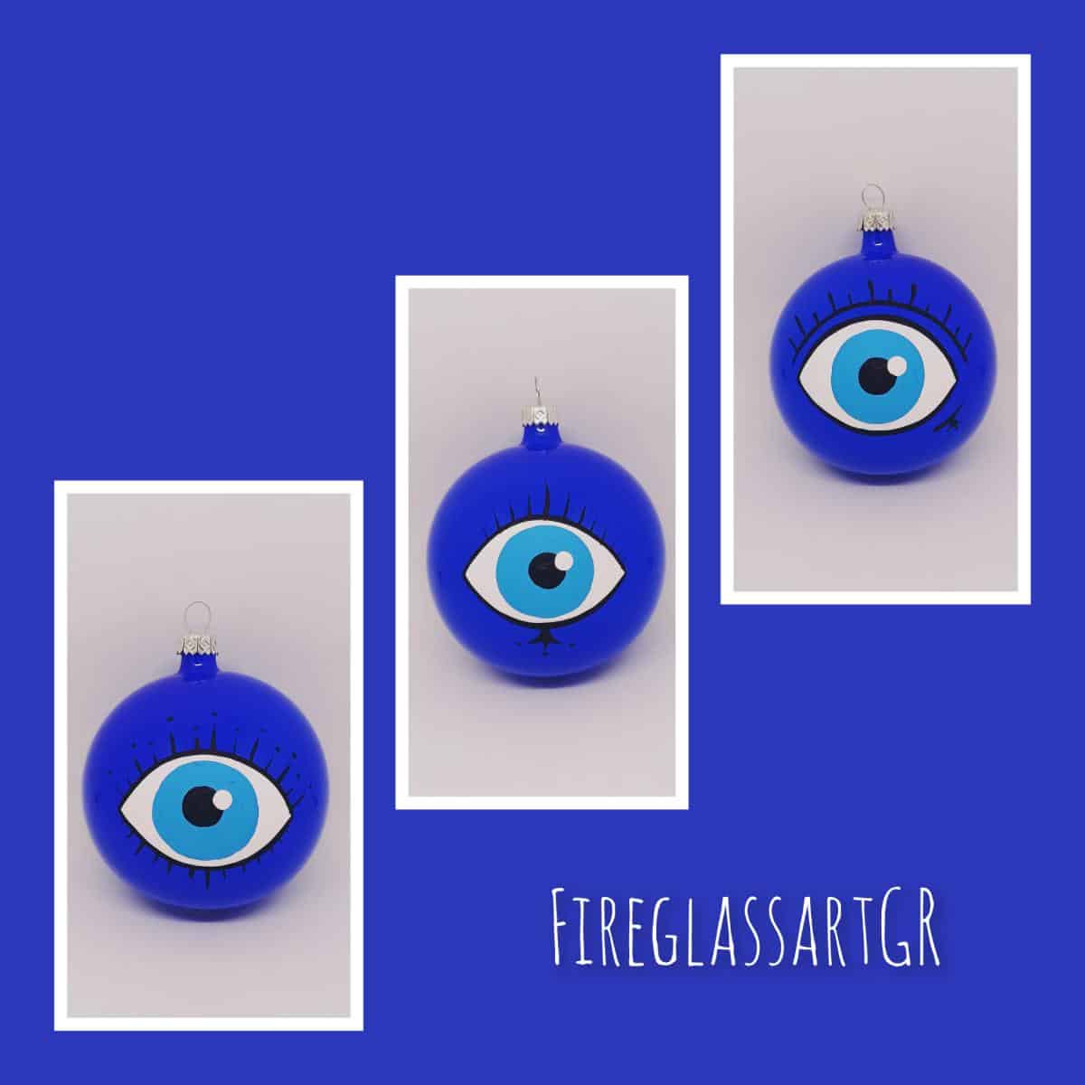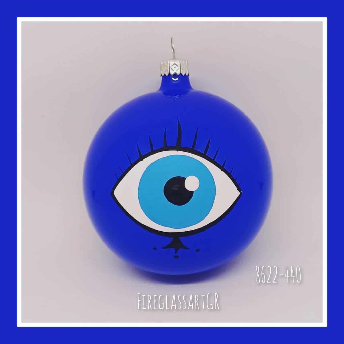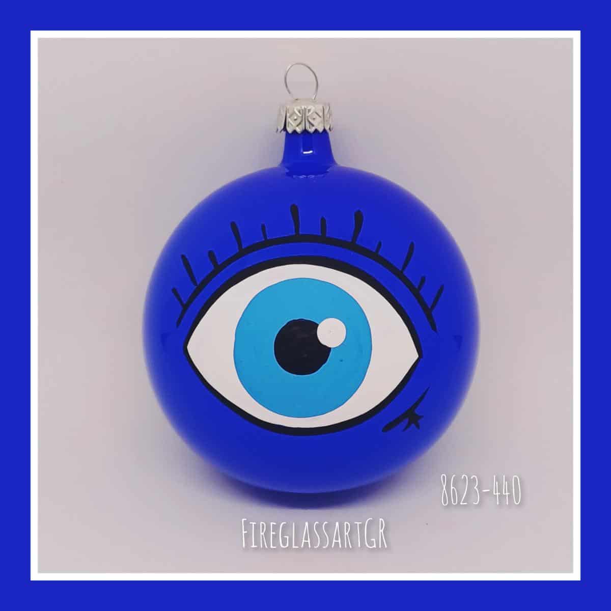 Χειροποίητη μπάλα από φυσητό γυαλί , ζωγραφισμένη στο χέρι, μάτια με βλεφαρίδες