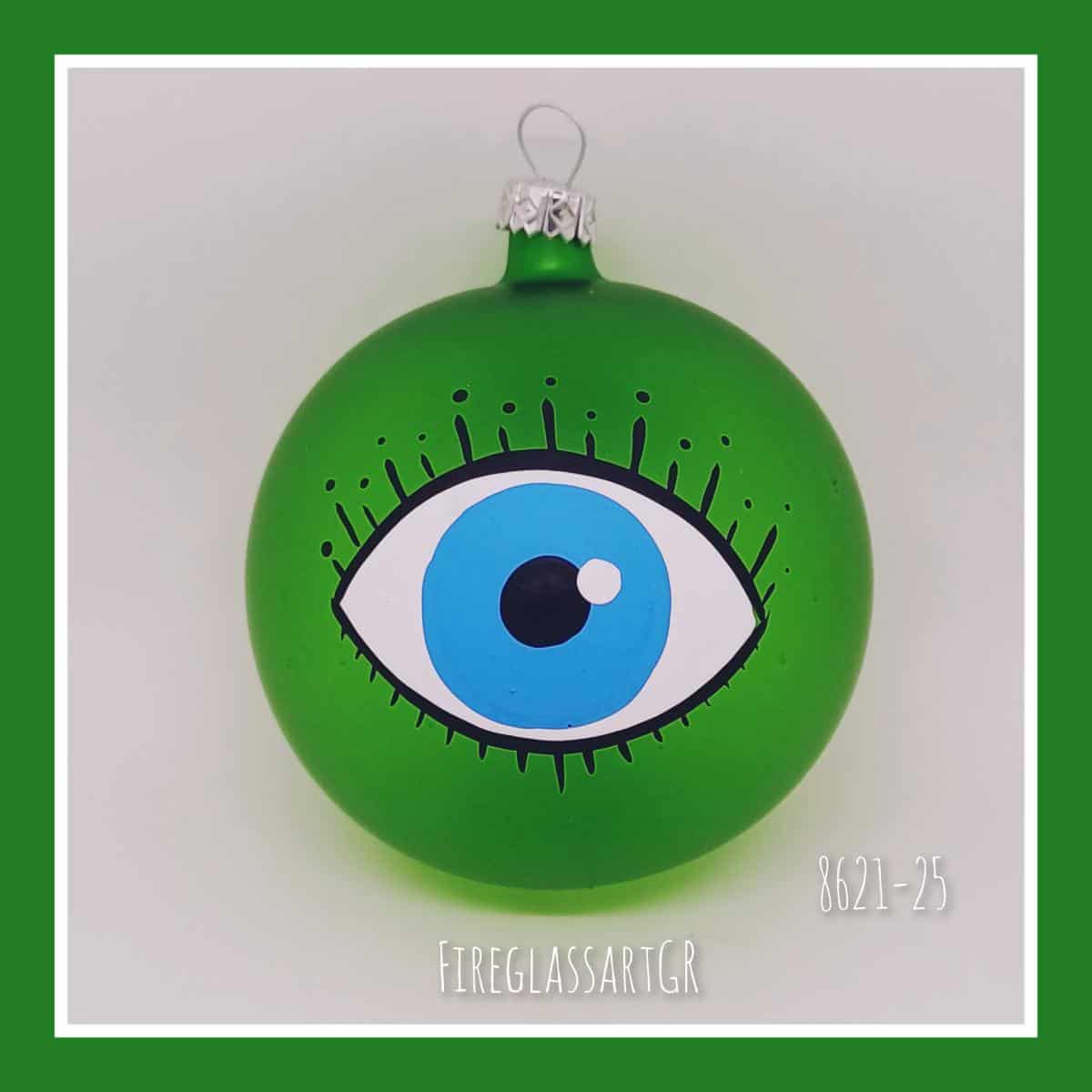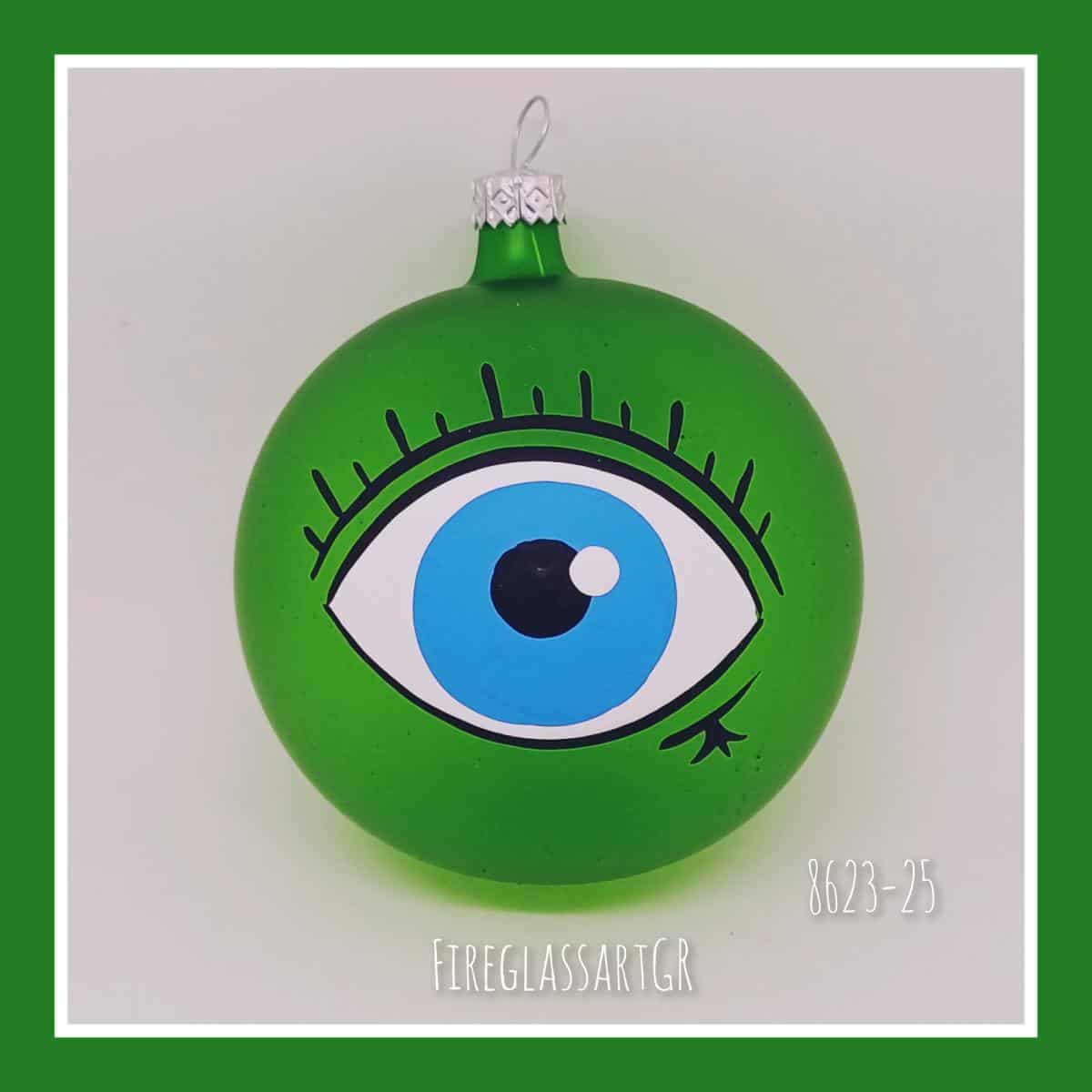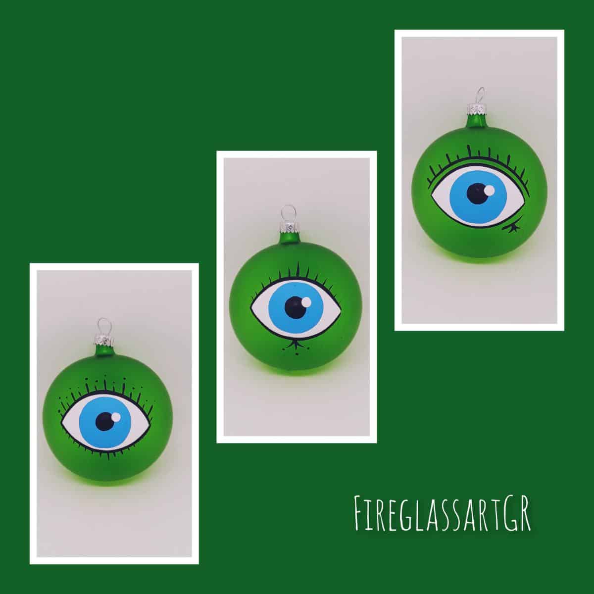 Χειροποίητη μπάλα από φυσητό γυαλί , ζωγραφισμένη στο χέρι, μάτια με βλεφαρίδες