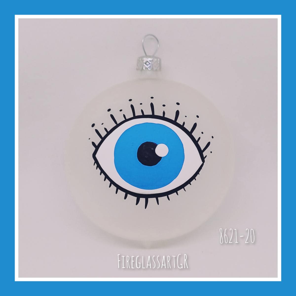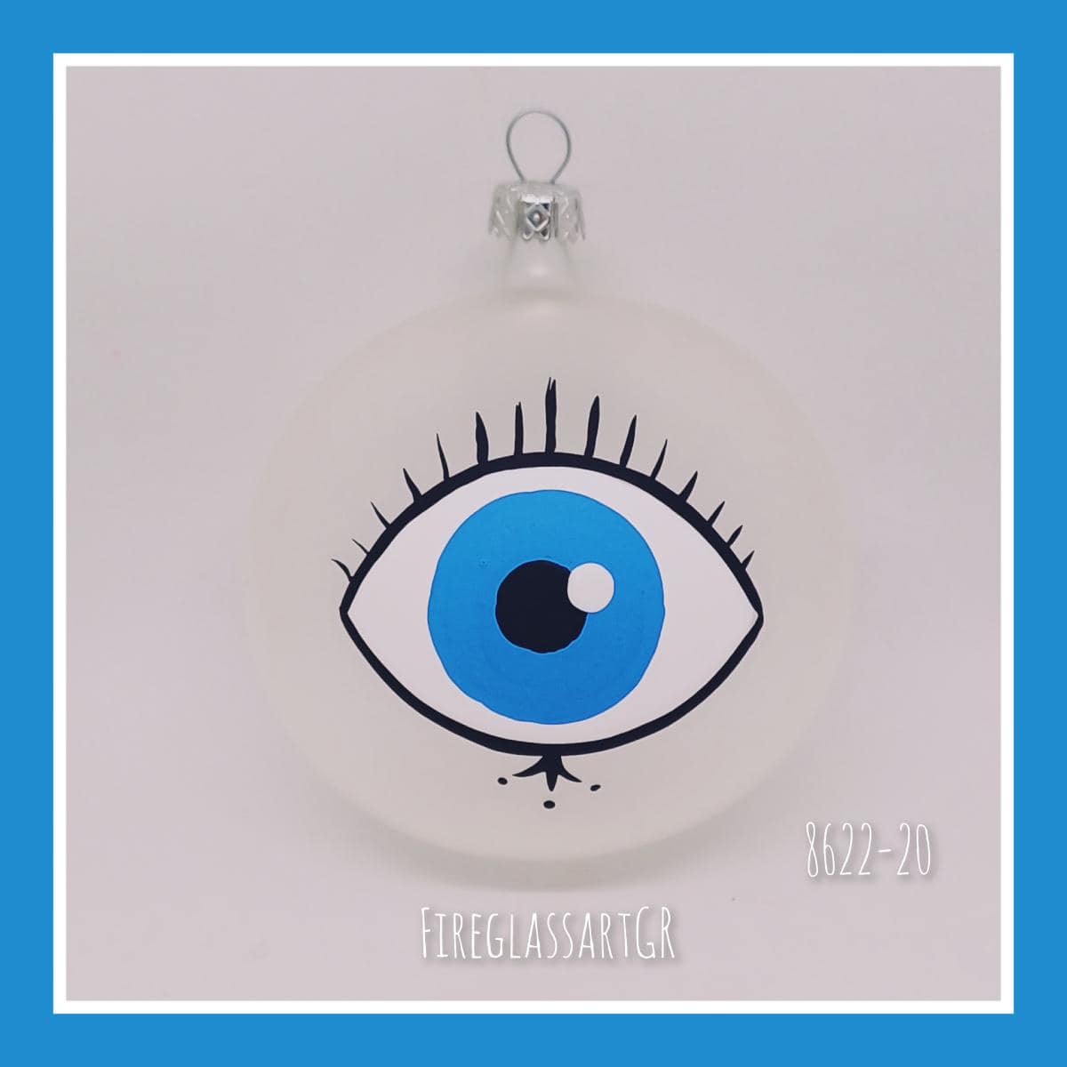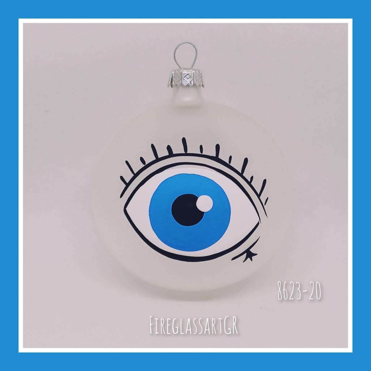Χειροποίητη μπάλα από φυσητό γυαλί , ζωγραφισμένη στο χέρι, μάτια με βλεφαρίδες
