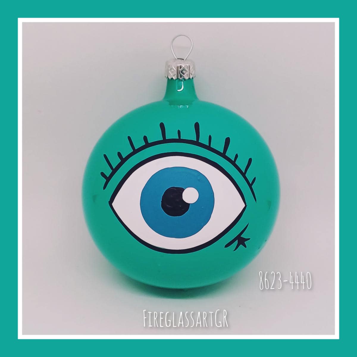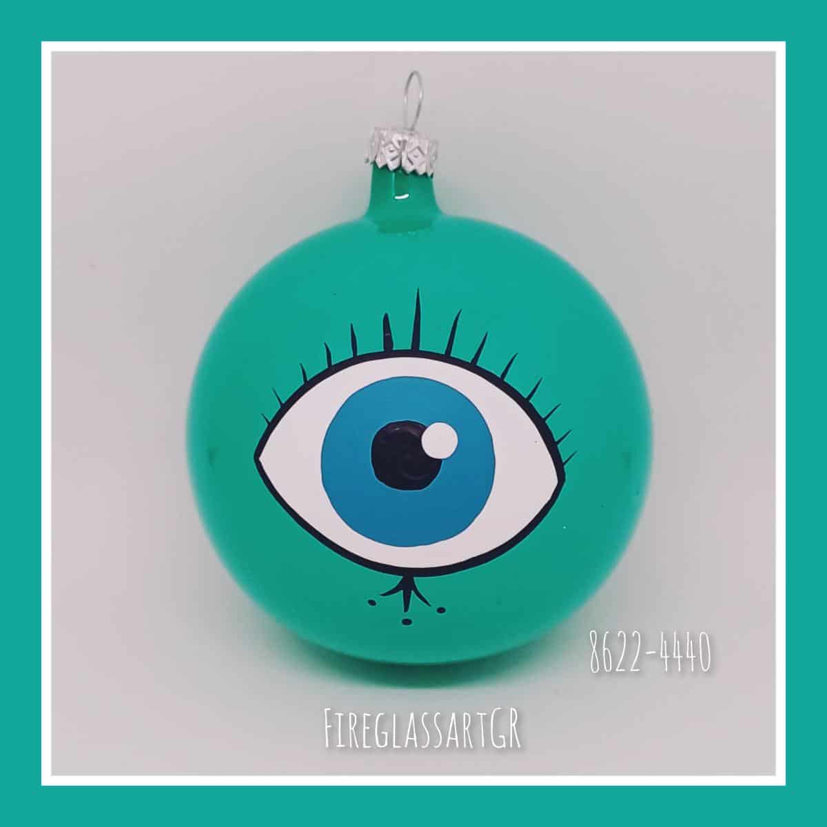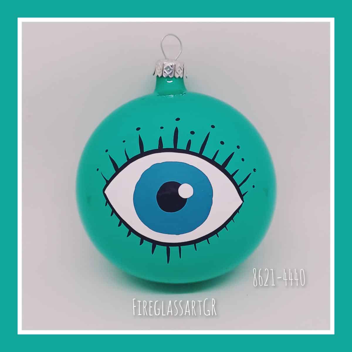 Χειροποίητη μπάλα από φυσητό γυαλί , ζωγραφισμένη στο χέρι, μάτια με βλεφαρίδες