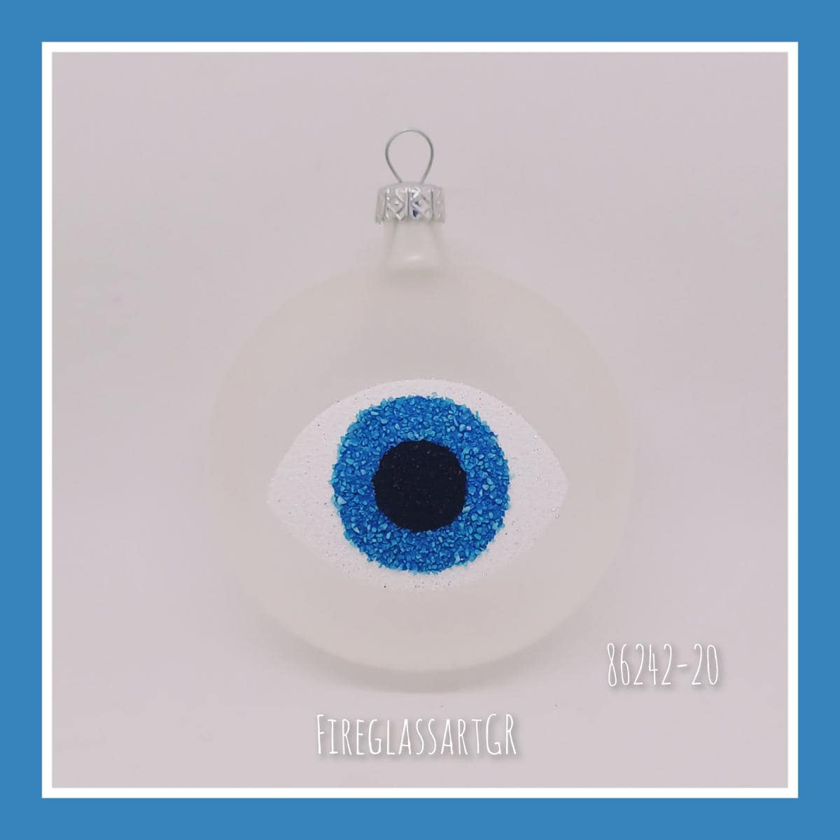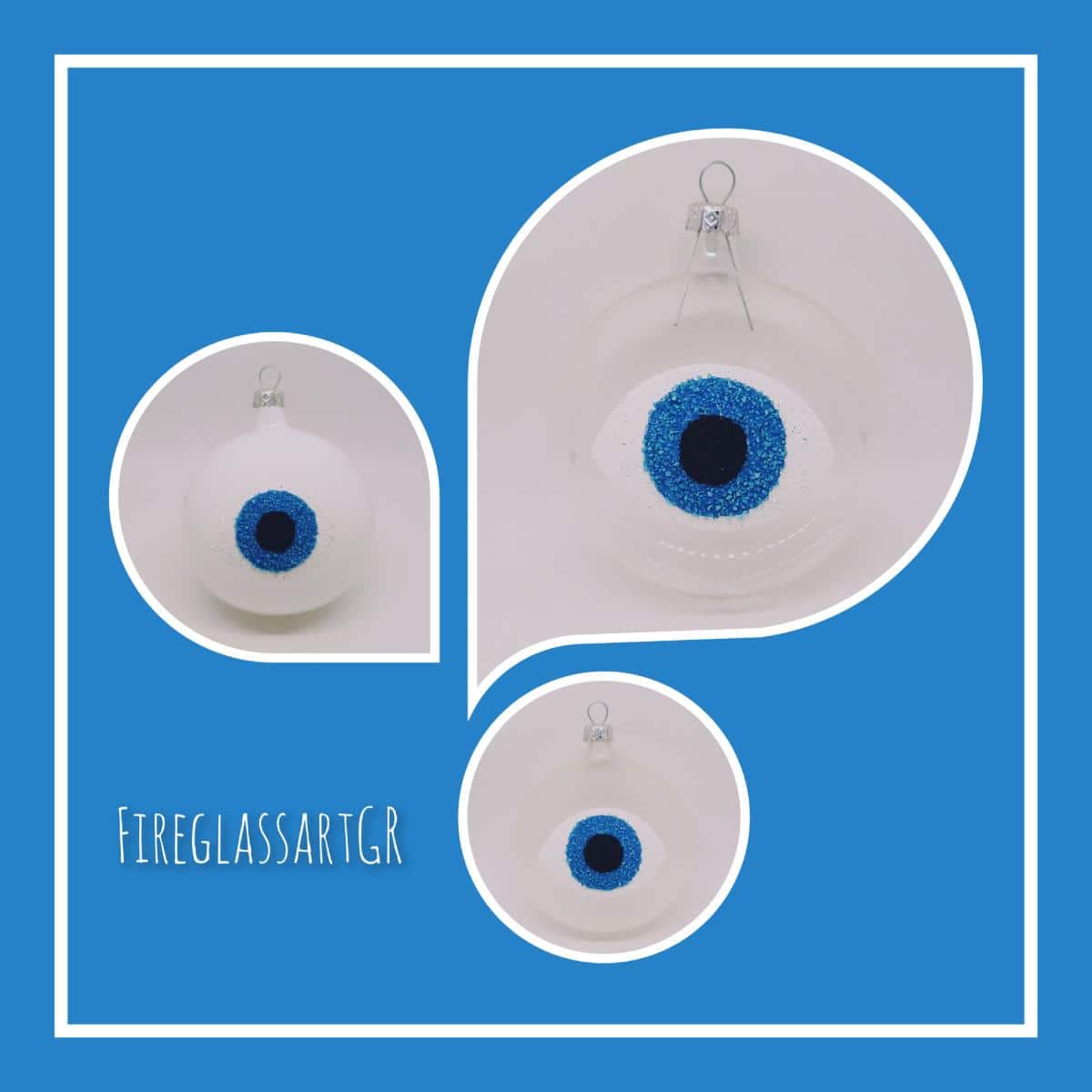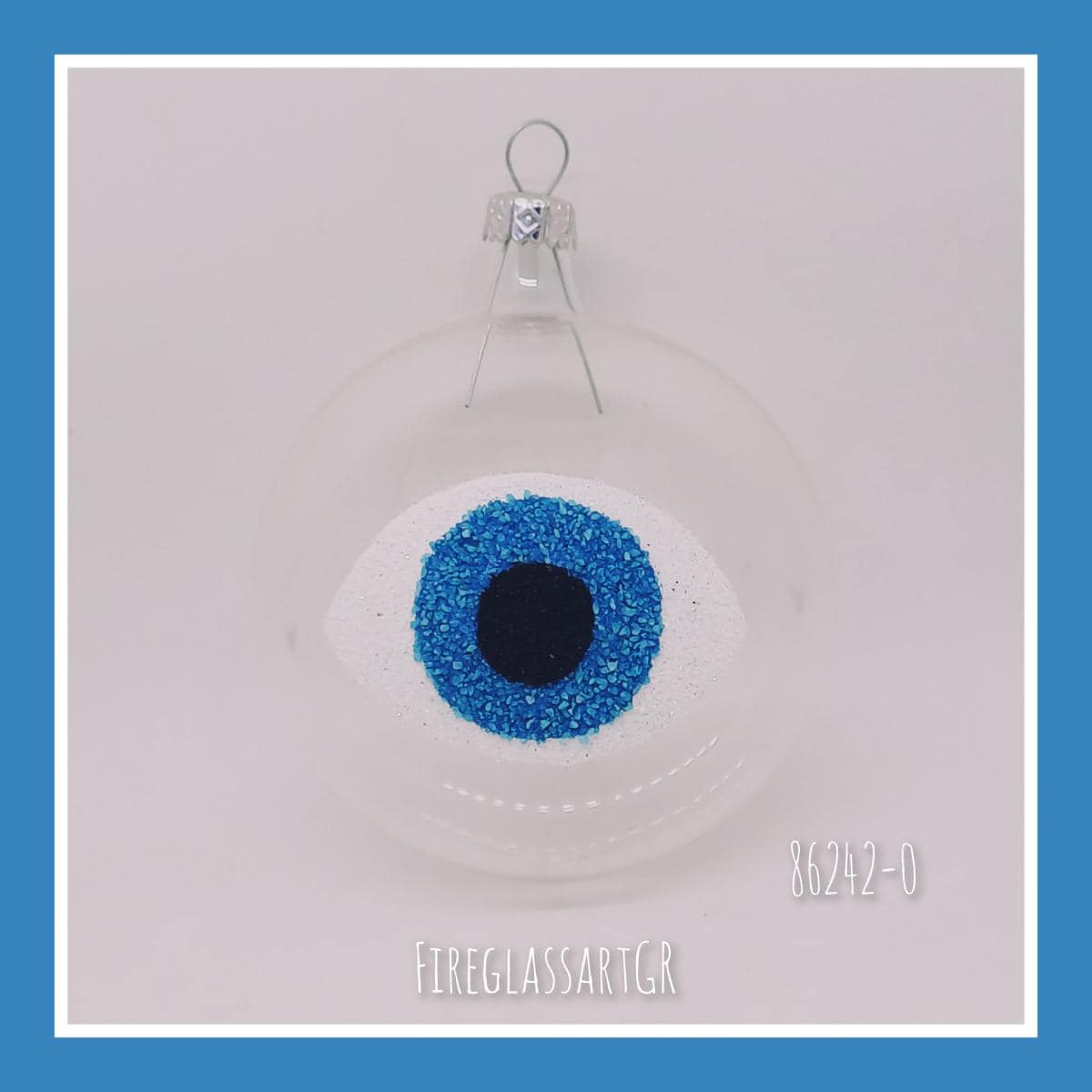 Xειροποίητη μπάλα από φυσητό γυαλί , ζωγραφισμένη στο χέρι, μάτια με αμμουδιά .