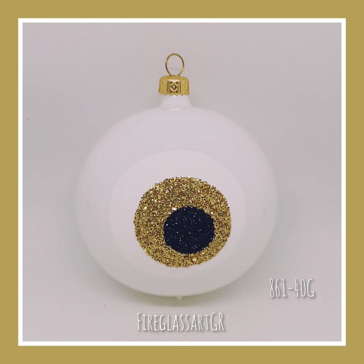 Χειροποίητη μπάλα από φυσητό γυαλί , ζωγραφισμένη στο χέρι, μάτια στρογγυλό stras.