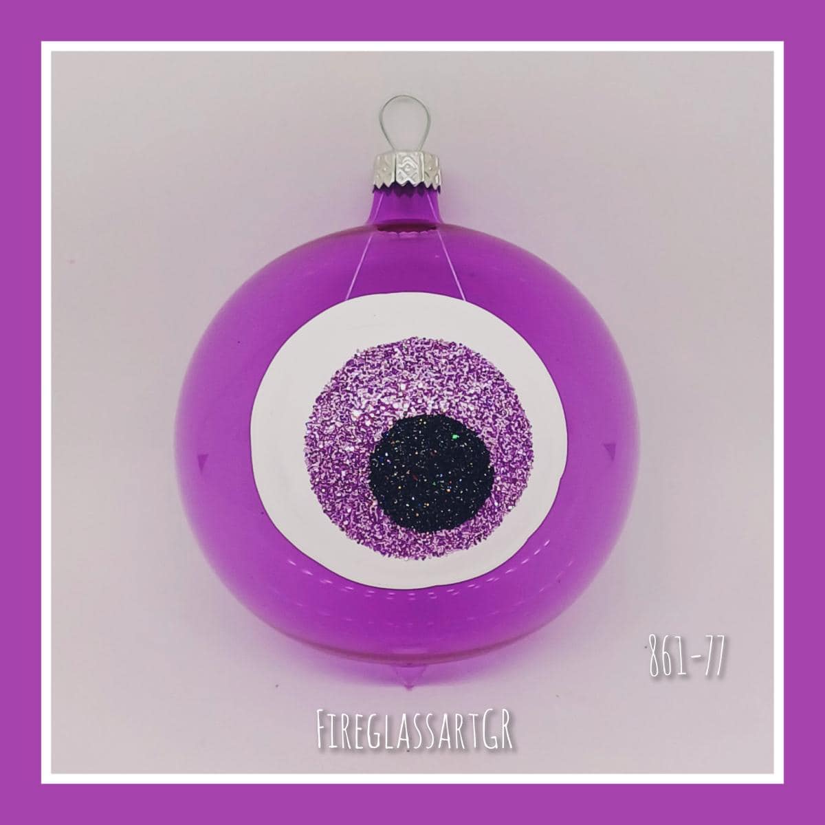 Χειροποίητη μπάλα από φυσητό γυαλί , ζωγραφισμένη στο χέρι, μάτια στρογγυλό stras.