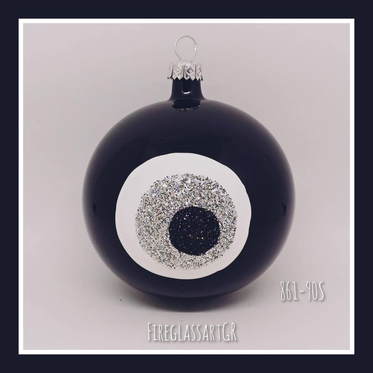 Χειροποίητη μπάλα από φυσητό γυαλί , ζωγραφισμένη στο χέρι, μάτια στρογγυλό stras.
