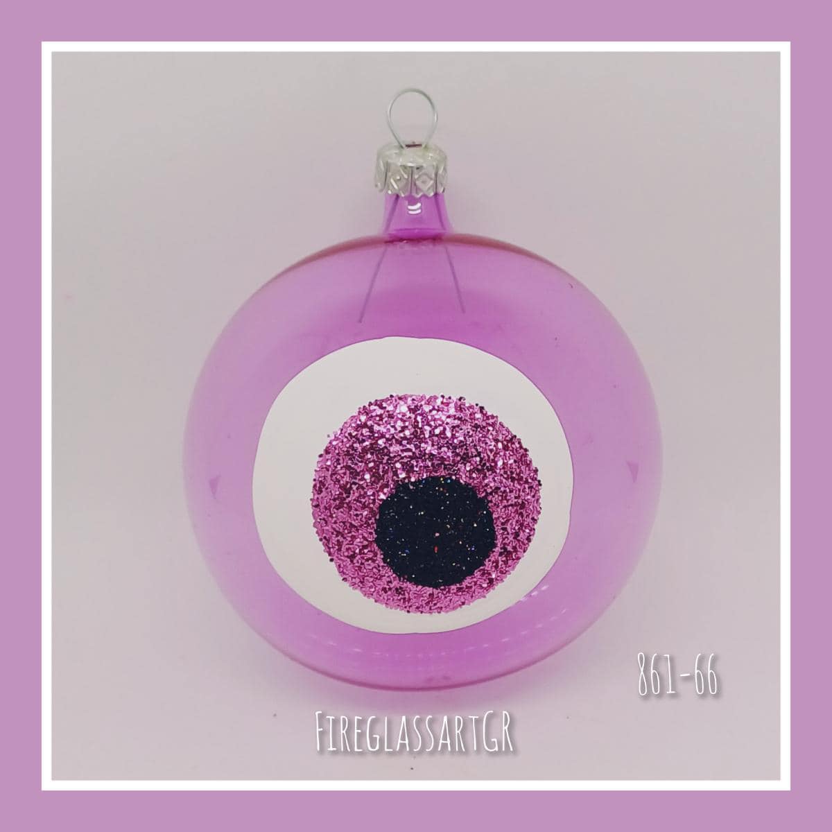 Χειροποίητη μπάλα από φυσητό γυαλί , ζωγραφισμένη στο χέρι, μάτια στρογγυλό stras.